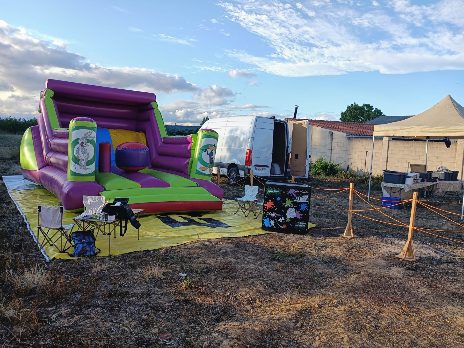 - Suministro eléctrico: Es necesario que en el lugar donde se vaya a montar el hinchable haya un punto de luz "cercano" con potencia suficiente para conectar la turbina del hinchable. Nosotros llevamos siempre una alargadera de 50 metros. En caso de que se monte en la calle, parque u otro lugar que no cuente con un punto de luz, se ofrece la posibilidad de alquilar un generador por 20€ + el consumo de gasolina en función de las horas del evento.