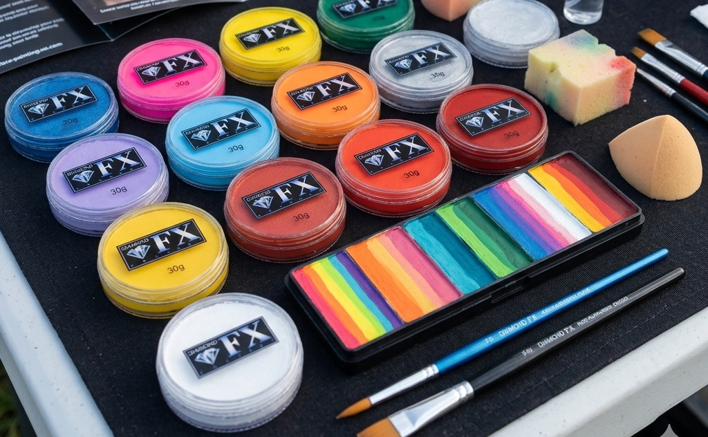 - Maquillaje profesional (pintacaras): Utilizamos exclusivamente maquillajes al agua de alta gama, hipoalergénicos y testados dermatológicamente, que se eliminan fácilmente con agua y jabón o con toallitas de bebé.